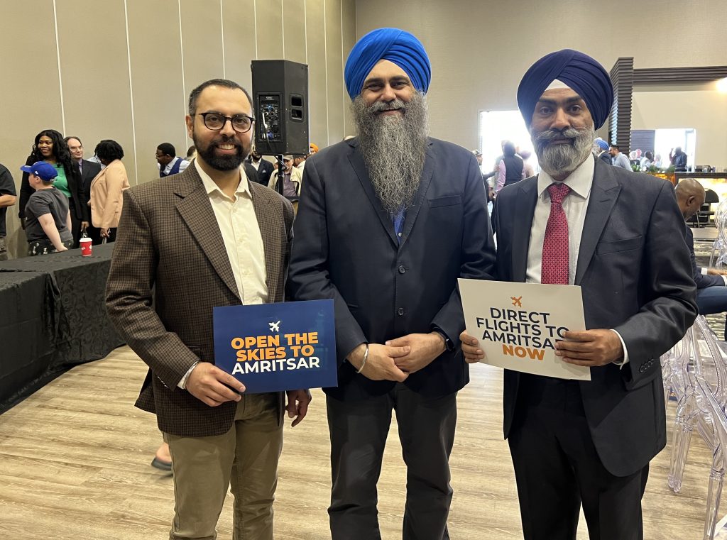 FlyAmritsar Initiative Global Convener Sameep Singh Gumtala who especially flew in from USA, while speaking at the event applauded Poilievre’s call for renegotiation of air service agreements with India to establish direct flights to Amritsar.