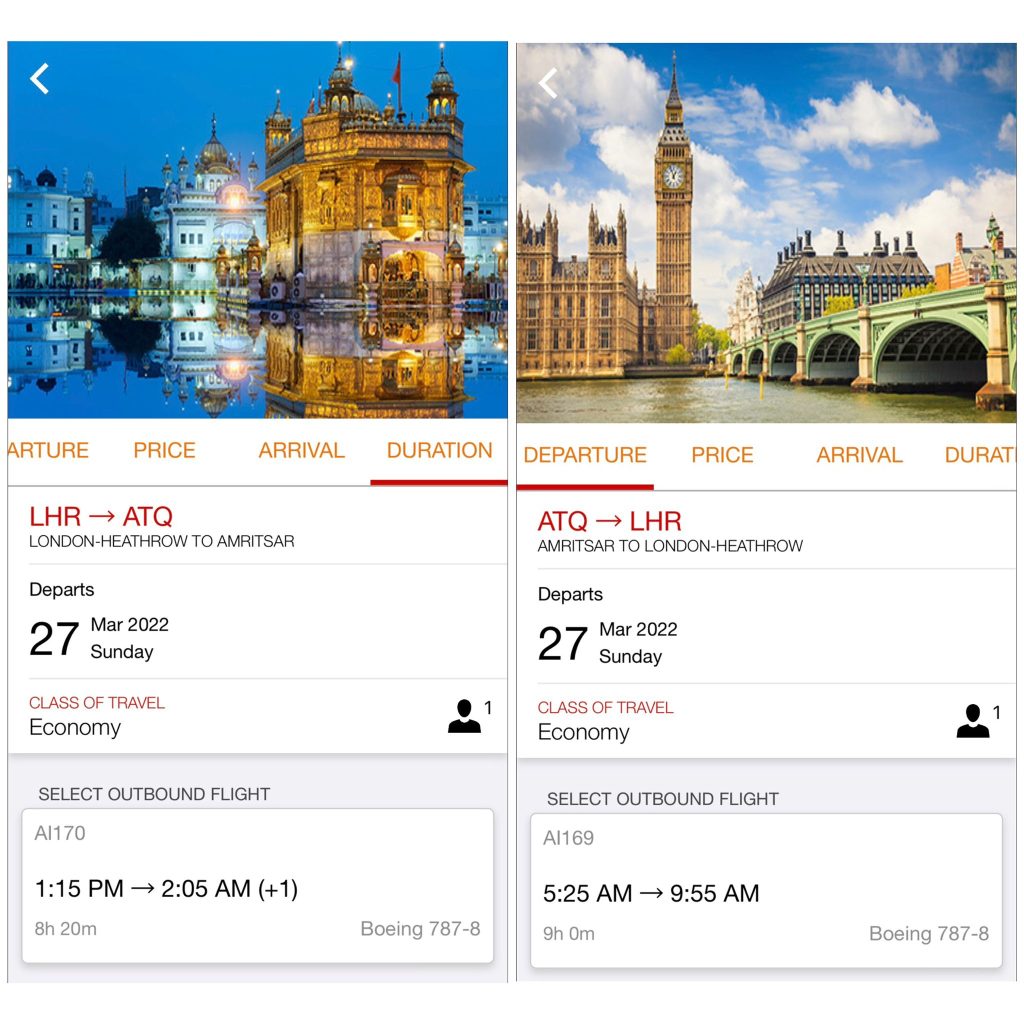 ਗੁਮਟਾਲਾ ਨੇ ਦੱਸਿਆ ਕਿ ਏਅਰ ਇੰਡੀਆ ਦੀ ਵੈੱਬਸਾਈਟ ‘ਤੇ ਤਾਜ਼ਾ ਸਮਾਸੂਚੀ ਅਨੁਸਾਰ, ਏਅਰ ਇੰਡੀਆ ਦੀ ਉਡਾਣ ਏਆਈ 170 ਸ਼ਨੀਵਾਰ, ਐਤਵਾਰ ਅਤੇ ਸੋਮਵਾਰ ਨੂੰ ਲੰਡਨ ਹੀਥਰੋ ਤੋਂ ਉਡਾਣ ਭਰੇਗੀ ਅਤੇ ਅੰਮ੍ਰਿਤਸਰ ਤੋਂ ਉਡਾਣ ਐਤਵਾਰ, ਸੋਮਵਾਰ ਅਤੇ ਮੰਗਲਵਾਰ ਨੂੰ ਰਵਾਨਾ ਹੋਵੇਗੀ। ਏਅਰ ਇੰਡੀਆ ਇਸ ਰੂਟ ‘ਤੇ 256 ਸੀਟਾਂ ਵਾਲਾ ਬੋਇੰਗ 787-8 ਡ੍ਰੀਮਲਾਈਨਰ ਜਹਾਜ਼ ਚਲਾਉਂਦੀ ਹੈ ਜਿਸ ਵਿੱਚ 238 ਇਕੋਨੋਮੀ ਅਤੇ 18 ਬਿਜ਼ਨਸ ਕਲਾਸ ਸੀਟਾਂ ਹਨ। ਇਹਨਾਂ ਸਿੱਧੀਆਂ ਉਡਾਣਾਂ ਦੀ ਬੁਕਿੰਗ ਅਕਤੂਬਰ 2022 (ਏਅਰਲਾਈਨਾਂ ਲਈ ਗਰਮੀਆਂ ਦੀ ਸਮਾਂ-ਸਾਰਣੀ ਦੇ ਅੰਤ) ਤੱਕ ਉਪਲਬਧ ਹੈ। ਵਰਤਮਾਨ ਵਿੱਚ, ਭਾਰਤ ਅਤੇ ਬ੍ਰਿਟੇਨ ਦਰਮਿਆਨ ਉਡਾਣਾਂ ਭਾਰਤ ਦੁਆਰਾ ਕਈ ਦੇਸ਼ਾਂ ਨਾਲ ਕੀਤੇ ਗਏ ਅਸਥਾਈ ਹਵਾਈ ਸਮਝੌਤਿਆਂ (ਏਅਰ ਬੱਬਲ) ਦੇ ਤਹਿਤ ਚੱਲ ਰਹੀਆਂ ਹਨ।