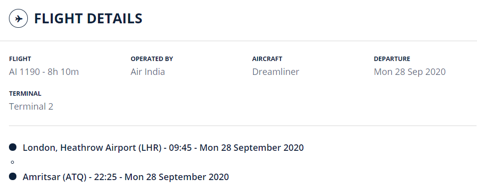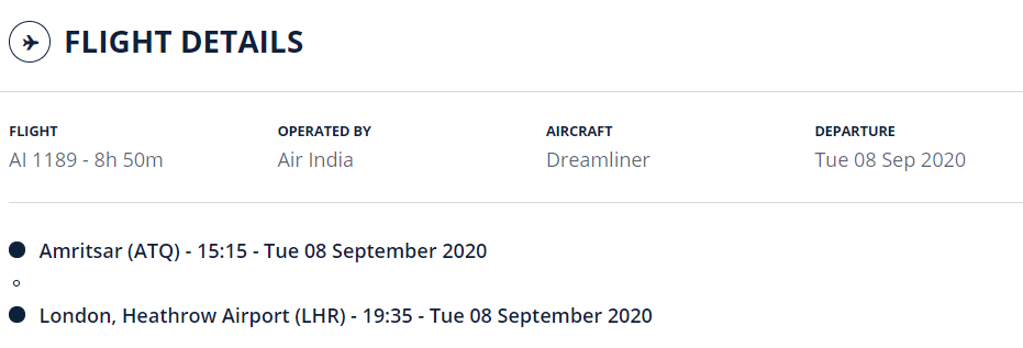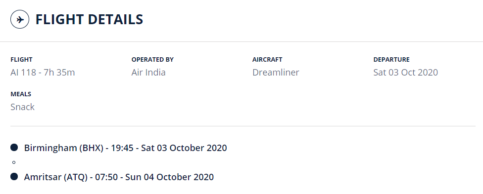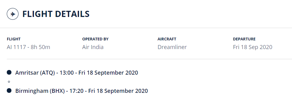 Starting 18th September 2020, Air India will also operate 1x weekly direct flights between Amritsar-Birmingham till 24th October 2020 under Vande Bharat Mission.