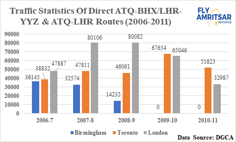 But what the data has to say about Air India’s Amritsar-Birmingham/London-Toronto and Jet Airways Amritsar-London routes?