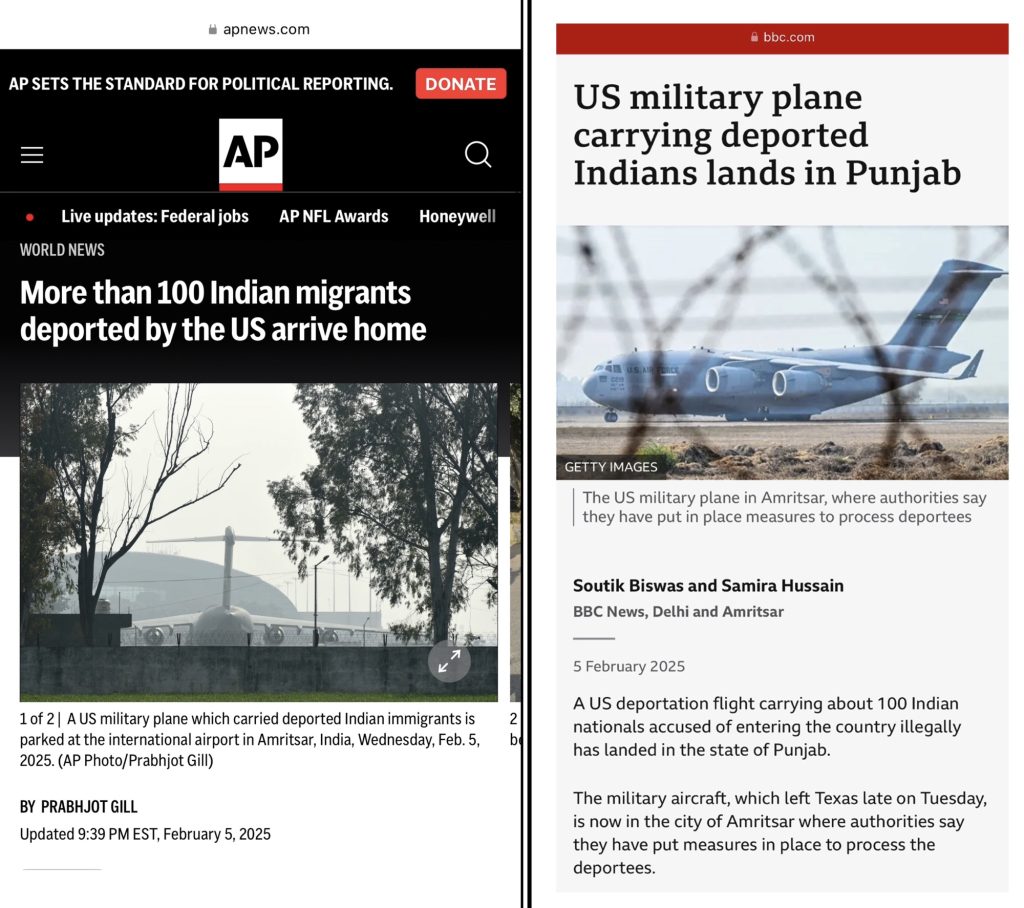📸 Below are screenshots of worldwide media coverage and an exclusive image of the U.S. military aircraft at Amritsar Airport—a rare and significant moment in the airport’s history.