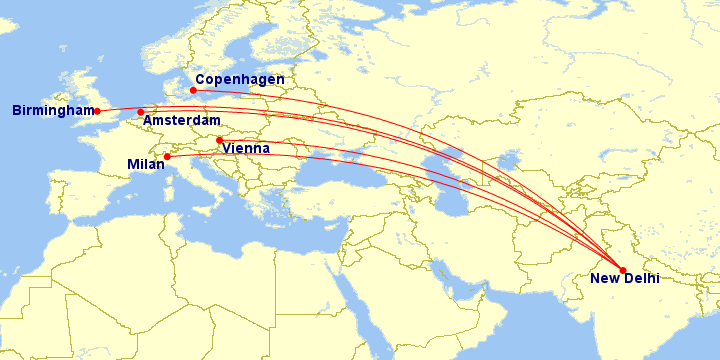 In the past 15 months of being privatized, Air India has added about 5 new (re-introduced) non-stop scheduled routes between India & Europe, including,
