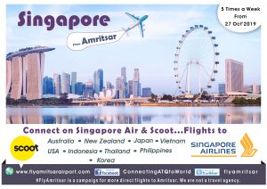 ਫਲਾਈ ਅੰਮ੍ਰਿਤਸਰ ਦੇ ਭਾਰਤ ਵਿਚ ਕਨਵੀਨਰ ਯੋਗੇਸ਼ ਕਾਮਰਾ ਨੇ ਕਿਹਾ ਕਿ ਸਕੂਟ 28 ਅਕਤੂਬਰ ਤੋਂ ਸਿੰਗਾਪੁਰ-ਅੰਮ੍ਰਿਤਸਰ ਵਿਚਕਾਰ ਚਲ ਰਹੀ ਆਪਣੀ ਉਡਾਣ ਨੂੰ ਵੀ ਸਰਦੀਆਂ ਲਈ ਜਨਵਰੀ ਦੇ ਅੰਤ ਤੱਕ ਹਫਤੇ ਵਿਚ ਚਾਰ ਤੋਂ ਪੰਜ ਦਿਨ ਕਰਨ ਜਾ ਰਹੀ ਹੈ। ਉਹਨਾਂ ਦਾਅਵਾ ਕੀਤਾ ਕਿ ਹਵਾਈ ਅੱਡੇ ਤੋਂ ਉਡਾਣਾਂ ਭਰਨ ਵਾਲੀਆ ਸਿੰਗਾਪੁਰ ਅਤੇ ਮਲੇਸ਼ੀਆਂ ਦੀਆਂ ਹਵਾਈ ਕੰਪਨੀਆਂ ਸਕੂਟ, ਏਅਰ ਏਸ਼ੀਆ ਤੇ ਮਲਿੰਡੋ ਏਅਰ ਪੰਜਾਬੀਆਂ ਨੂੰ ਸਿੰਗਾਪੁਰ ਅਤੇ ਕੁਆਲਾਲੰਪੁਰ ਰਾਹੀਂ ਆਸਟਰੇਲੀਆ ਅਤੇ ਹੋਰਨਾਂ ਵਿਦੇਸ਼ੀ ਮੁਲਕਾਂ ਤੋਂ ਪਹਿਲਾਂ ਨਾਲੋ ਵੀ ਸੁਵਿਧਾਜਨਕ ਕੁਨੈਕਟੀਵੀਟੀ ਅਤੇ ਘੱਟੋ-ਘੱਟ ਸਮੇਂ ਵਿਚ ਅੰਮ੍ਰਿਤਸਰ ਪਹੁੰਚਾਉਣ ਦੀ ਪੂਰੀ ਕੋਸ਼ਿਸ਼ ਕਰ ਰਹੀਆਂ ਹਨ। ਇਹ ਹਵਾਈ ਕੰਪਨੀਆਂ ਪੰਜਾਬ ਨੂੰ ਸਿੰਗਾਪੁਰ ਅਤੇ ਕੁਆਲਾਲੰਪੁਰ ਰਾਹੀਂ ਆਸਟਰੇਲੀਆ ਦੇ ਸ਼ਹਿਰ ਮੈਲਬੋਰਨ, ਸਿਡਨੀ, ਐਡੀਲੇਡ, ਪਰਥ, ਗੋਲਡ ਕੋਸਟ, ਬ੍ਰਿਸਬੇਨ ਅਤੇ ਹੋਰ ਦੱਖਣੀ ਏਸ਼ੀਆਈ ਮੁਲਕਾਂ ਥਾਈਲੈਂਡ, ਇੰਡੋਨੇਸ਼ੀਆ, ਹਾਂਗਕਾਂਗ, ਫਿਲੀਪਾਈਨ ਨੂੰ ਜੋੜਦੀਆਂ ਹਨ।
