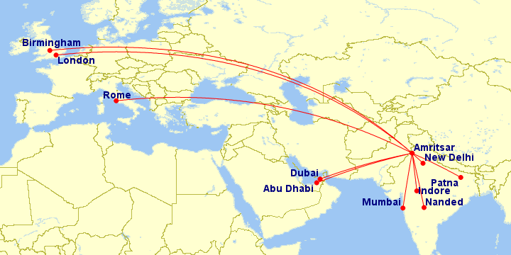 Amritsar is now directly connected with over 7 international and 10 domestic destinations, namely, London, Birmingham, Rome, Dubai, Sharjah, Abu Dhabi, Doha, Delhi, Mumbai, Srinagar, Patna, Jaipur, Ahmedabad, Kolkata, Bengaluru, Nanded and Indore.