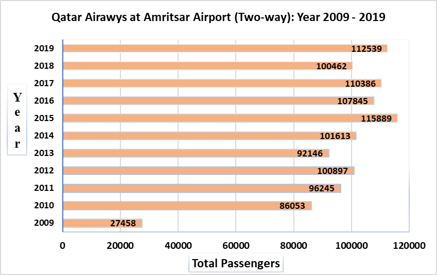 An analysis of the data that is released by India’s Director General of Civil Aviation (DGCA), the airline by the end of year 2019, the airline flew more than a million passengers between Amritsar-Doha. It is also estimated that almost 85% of its traffic is transit passengers via Doha to/from UK, Europe and North America. Since 2014, the airline is flying more than 100,000 passengers every year on this route with more than 90% (approx.) average yearly passenger load factor. The success of Qatar airways proves huge potential of Amritsar Airport for foreign airline carriers considering the large Punjabi diaspora residing all over the World.