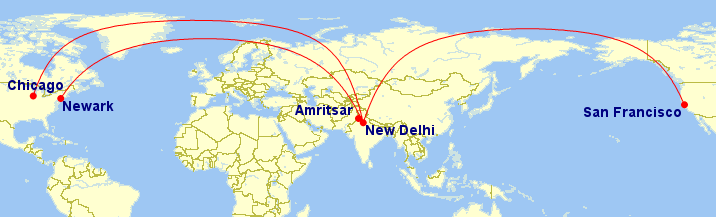 Passengers can travel from Amritsar on Air India flights via Delhi to its destinations in the USA. The airline connects passengers on its evening flight departing at 10:50 pm from Amritsar to Delhi, conveniently connecting passengers to its flights from Delhi to the US.